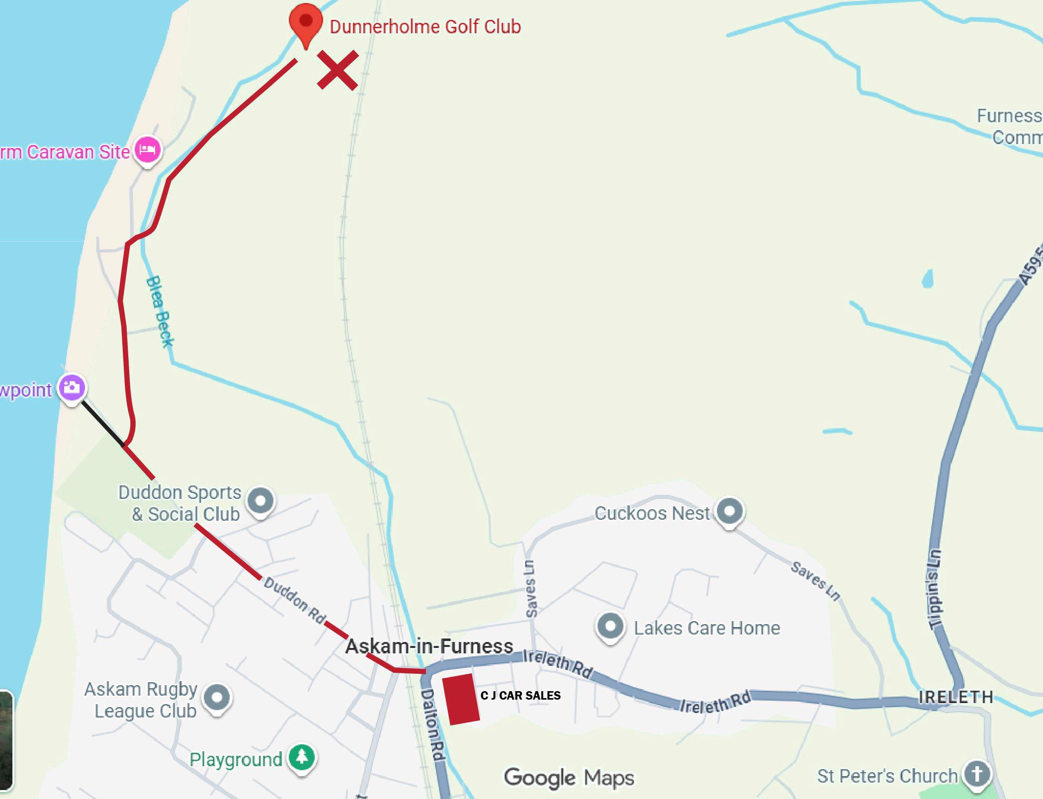 - You will see an entrance on the right signposted Dunnerholme Golf Club.